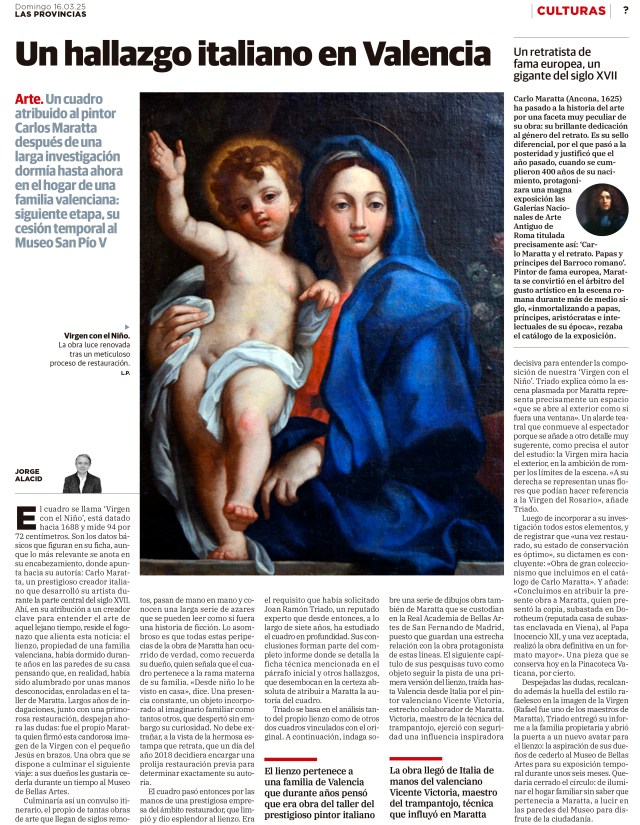 Artículo publicado en el diario Las Provincias el 416 de marzo de 2025, referente a la restauración de una obra de Carlo Maratta realizada por nosotros